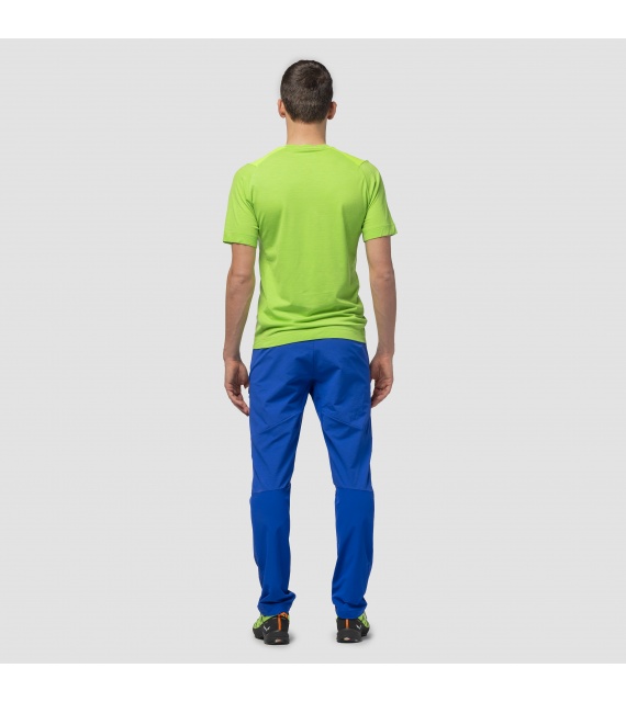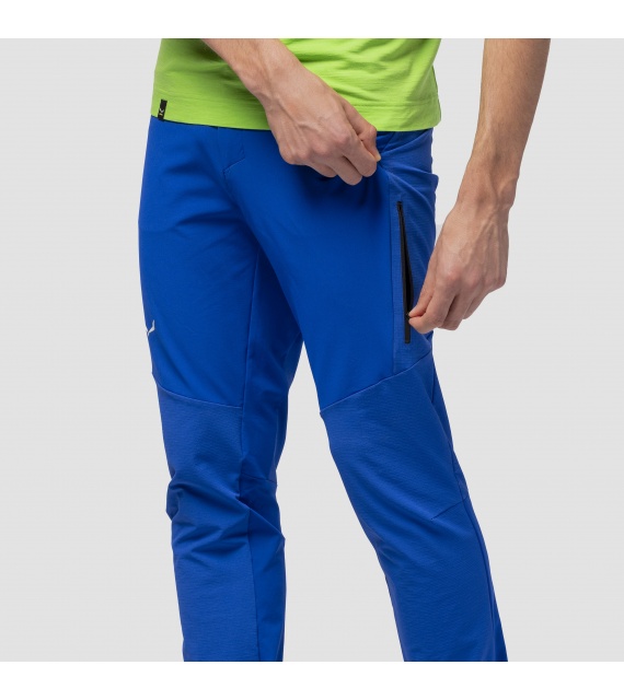Softshellové kalhoty Agner Durastretch jsou navrženy tak, aby poskytovaly odolnost a neomezený pohyb díky strečovému klínu specifickému pro lezení, ergonomickým kolenům a úzkého střihu. Odolné proti oděru na skále. Pevný, 196 gramů oděruodolný Durastretch poskytuje dobrou prodyšnost a odvod vlhkosti při dlouhých dnech na skalách. Tato tkanina je navíc vyrobena z recyklovaného nylonu a má povrchovou úpravu DWR (odolná vodoodpudivost) bez obsahu PFC – proto jsou tyto kalhoty udržitelným produktem SALEWA®. Atletický střih a štíhlé nohavice se stahovací šňůrkou vynikají v technickém terénu a pomáhají podporovat dobrou práci nohou v těžších cestách. Kalhoty disponují ergonomickým pasem, který perfektně sedí pod sedákem, a zadní kapsou na zip, plochou boční kapsou na zip a plochými předními kapsami.