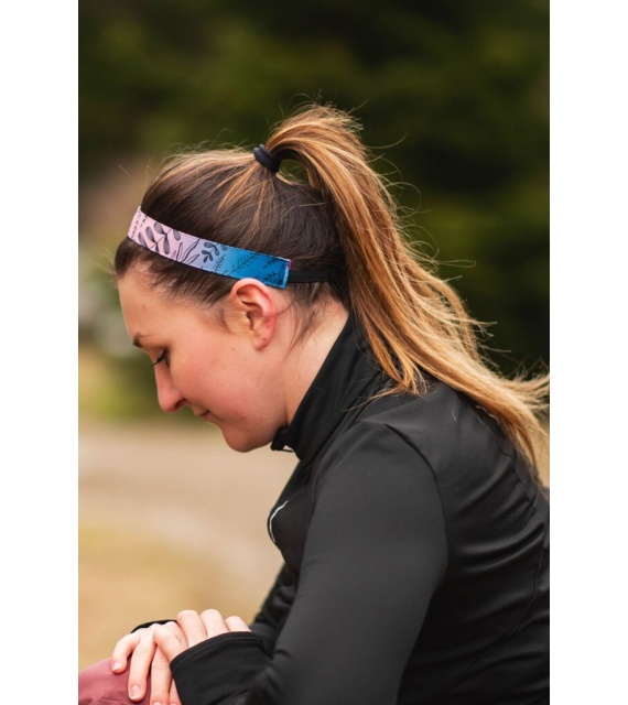 Sportovní čelenka s kresleným motivem rostlin a ombre efektem pro všechny milovnice přírody a pohybu.