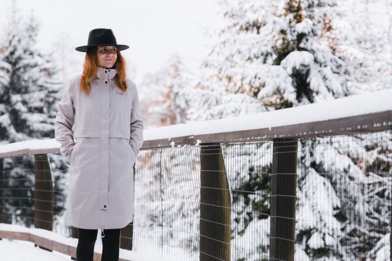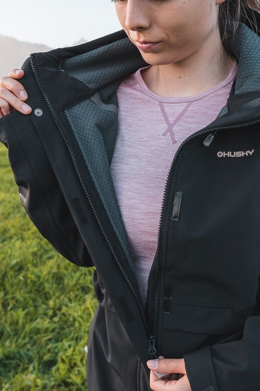 Víceúčelový dámský kabát se stahováním v pase využitelný celoročně pro různé outdoor aktivity a turistiku.