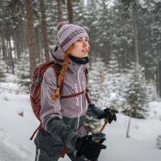 Hardshellová bunda pro ženy vhodná na skialpy, lyžování, zimní treky i další sportovní aktivity.
