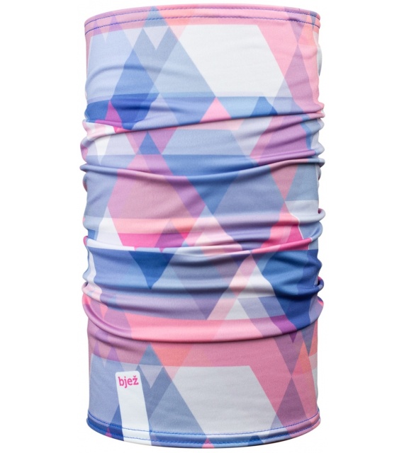 Zimní nákrčník v trojúhelníčkovém designu a světlé růžovofialové kombinaci pro ochranu při sportování v chladném počasí. Skvělý parťák pro zimní běhání, běžkování, náročné výšlapy v horách i procházky v parku.
