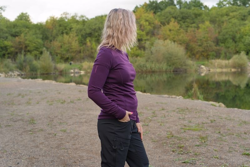 Damen-Sweatshirt aus angenehmem Material mit Merinowolle für alle Outdoor-Aktivitäten von Herbst bis Winter.