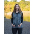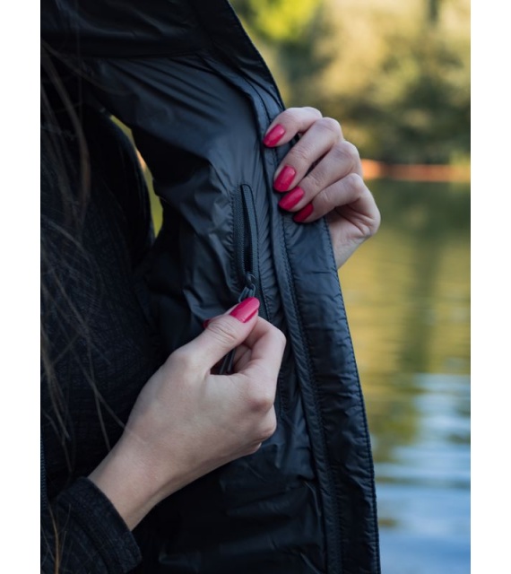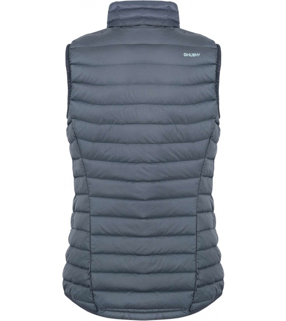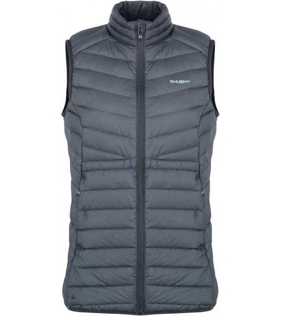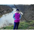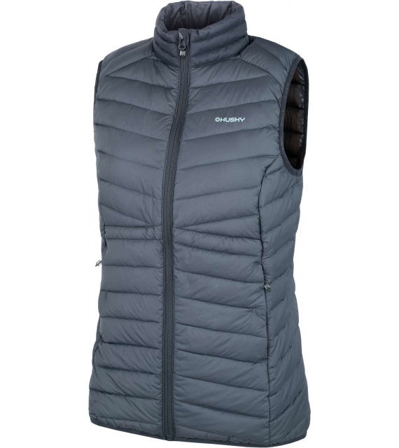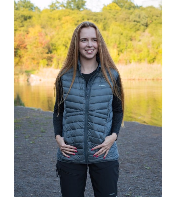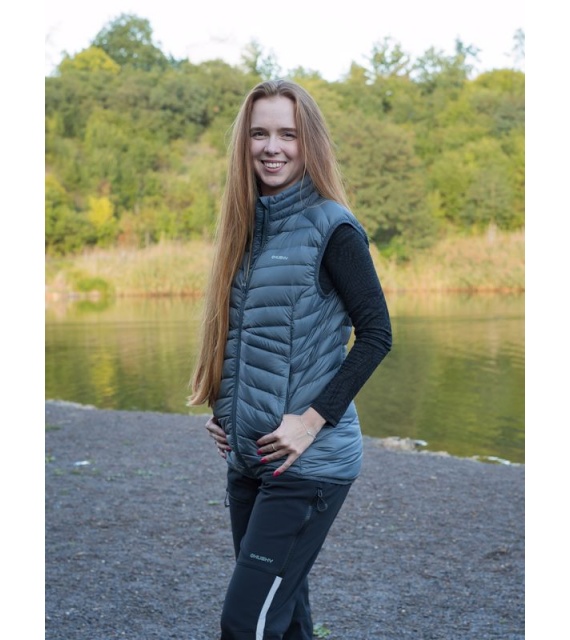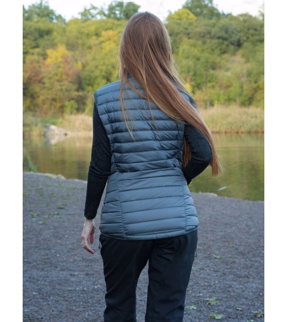 Ultralehká dámská péřová vesta na zip vhodná na různé outdoorové aktivity v chladnějších dnech.