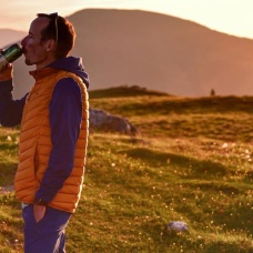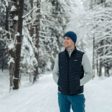 Ultralehká pánská péřová vesta na zip vhodná na různé outdoor aktivity v chladnějších dnech.