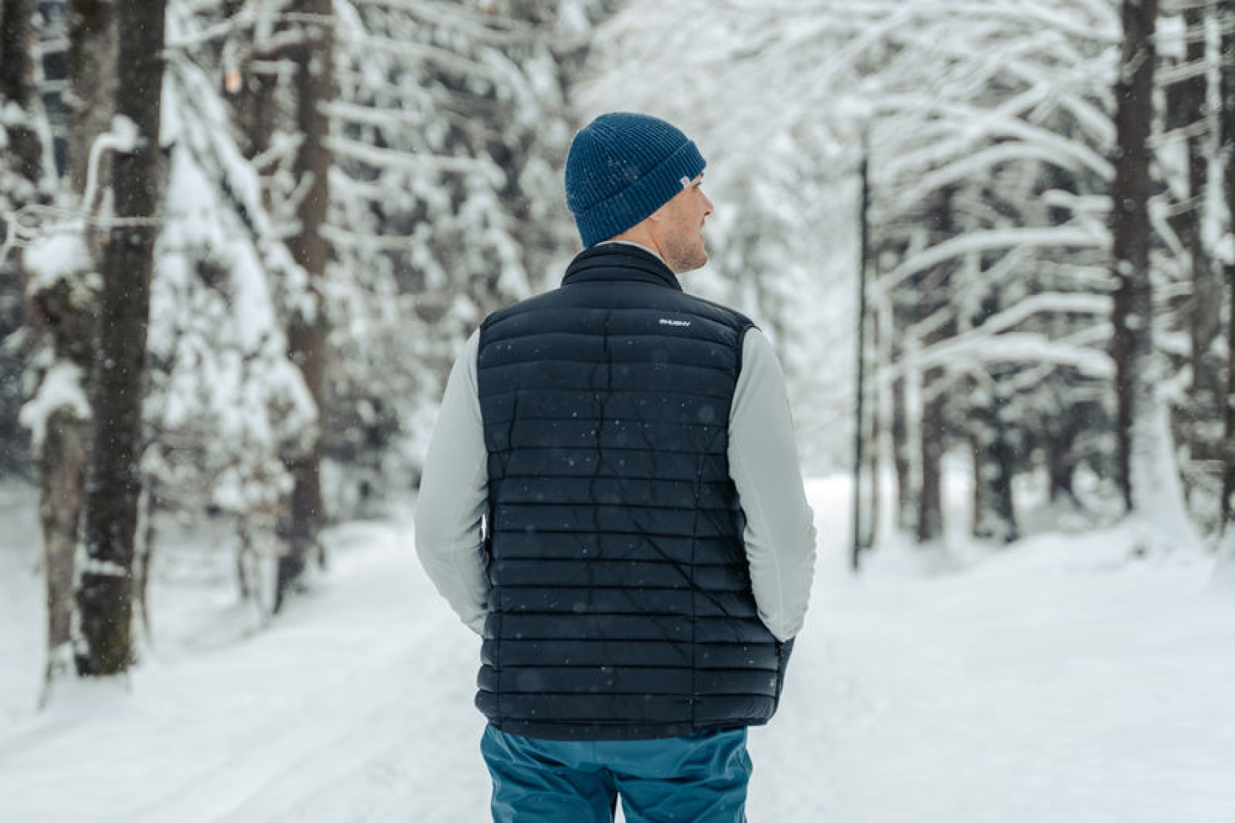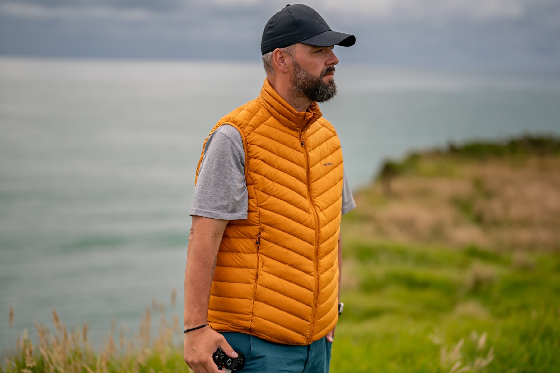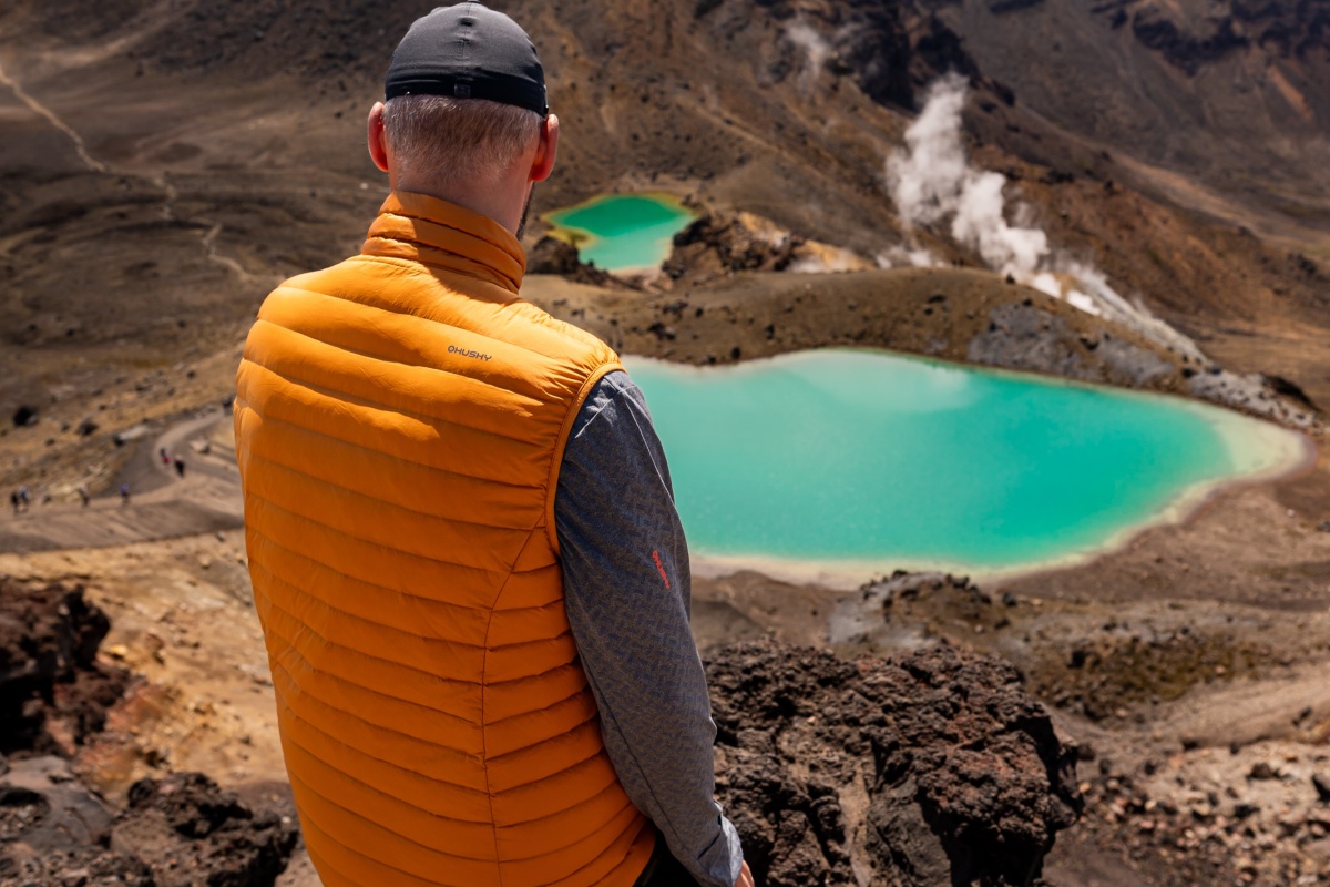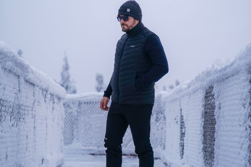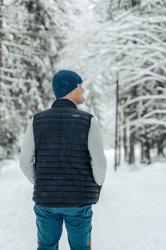 Ultralehká pánská péřová vesta na zip vhodná na různé outdoor aktivity v chladnějších dnech.