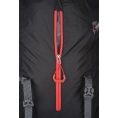 Features of the Scampy backpack: back system of breathable mesh; breathable padding on anatomically shaped shoulder and waist straps; top lid with pocket; hip belt; chest strap; zippered side pockets; holder for ice axe/trekking poles; rain cover