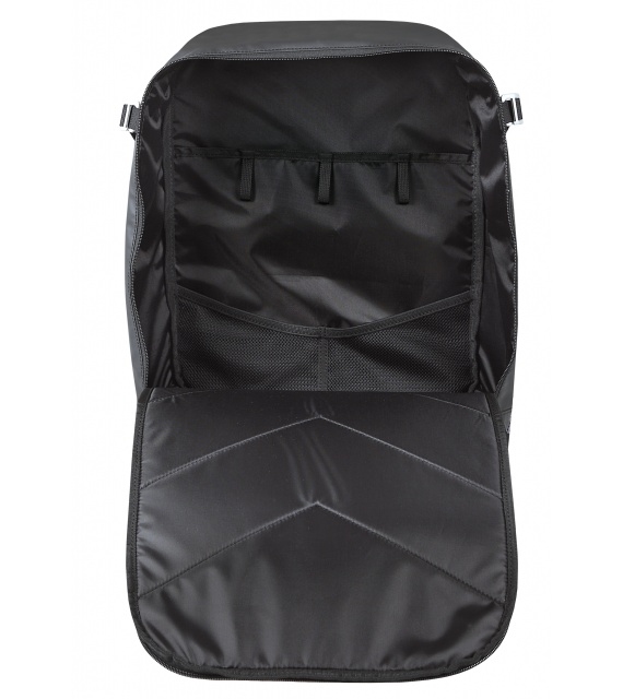 V zadní části je speciální kapsa na notebook a dokumenty. Ve vnitřní části je vytvořena jedna velká kapsa rozdělená přepážkou na dvě části. Vepředu jsou uloženy ještě dvě menší síťované kapsy pro uložení drobností.
