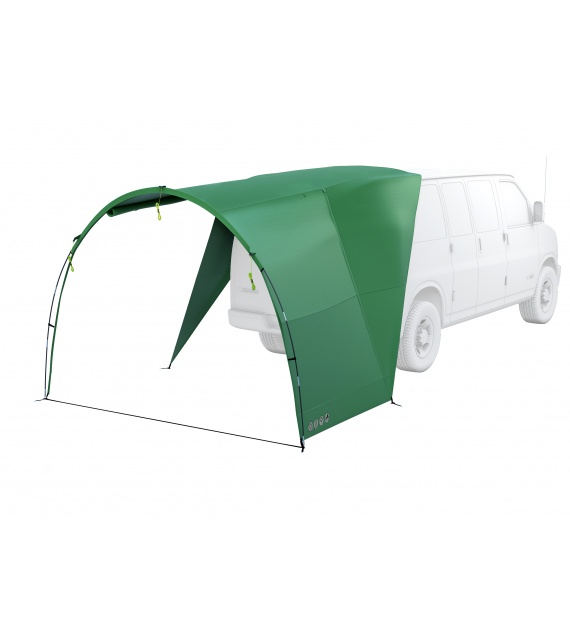 The Shelly shelter was designed with versatility in mind, so you can easily set it up next to any tent, caravan, or even a normal van. It helps enhance your comfort and enlarge the living space when camping.