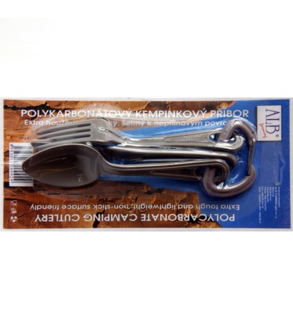 Lehký třídílný polypropylenový příborový set s karabinou.