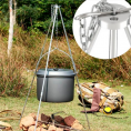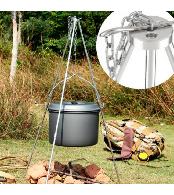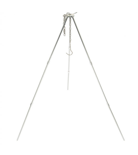Skládací trojnožka s řetízkem a háčkem na zavěšení kotlíku. Nastavitelná výška zavěšení. Délka řetězu: 50 cm. Ideální pomocník při vaření v kotlíku na ohništi.