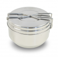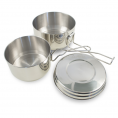 Sada nerezových ešusů z kvalitního pevného materiálu. Složení: velká miska 1,25 l, malá miska 0,85 l, víčko 0,3 l. Nerez je pro potraviny vhodnější než hliník.