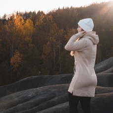 Lehká mikina na jaro-podzim, konečně dostatečně dlouhá i pro nás vysoké. Rukávy krásně dlouhé a kapuce akorát vysoká i pro nás s dlouhým krkem, takže konečně nemusím krčit ramena. Ocenila bych i ten samý střih s tlustou teplou látkou, aby se dala nosit místo kabátku.