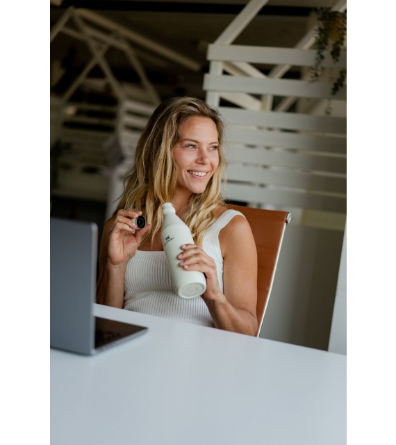 Stylová láhev na sport, do přírody, ale i do města. Láhev ve tvaru "kuželky" můžete nosit v batohu, v tašce a nebo jentak v ruce. Díky dvojitému uzávěru se z láhve snadno pije, ale také snadno myje a dobře se z ní nalévá.