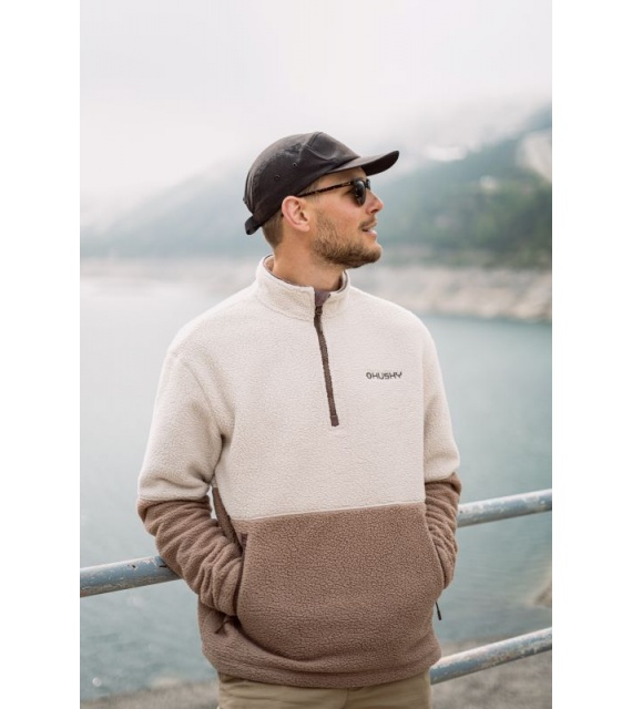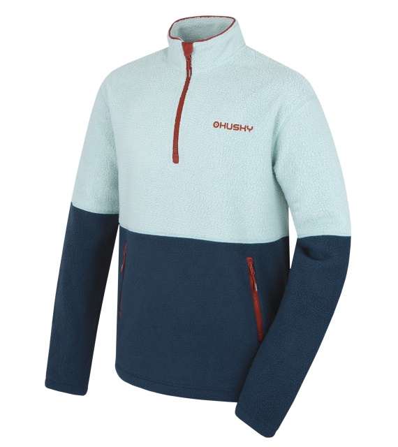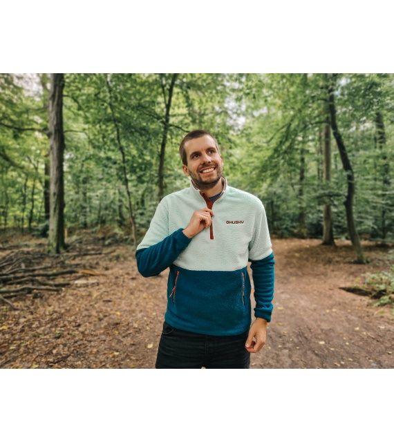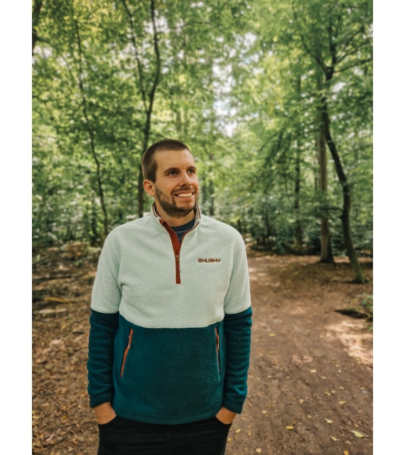Silnější pánský svetr se zipem ke krku vhodný k různým outdoor aktivitám.