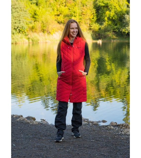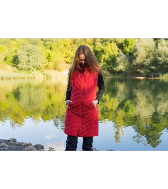 The long women’s quilted hooded vest NAPI L is a garment that certainly belongs in your wardrobe. Comfortable and insulated vest with a Huskytech 7,000 lining and membrane will accompany you on walks around town and during various outdoor activities.