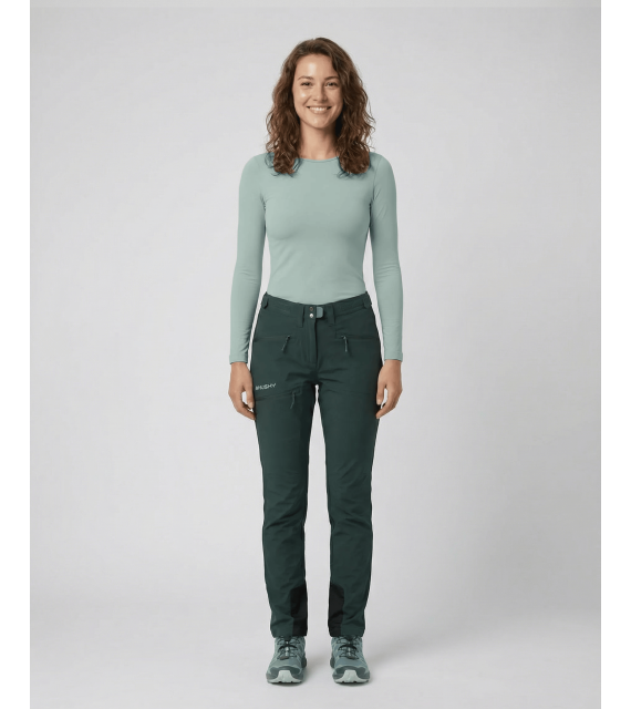 You can confidently wear the stronger, durable women's outdoor pants Kabuki L made of technical fabric for high-mountain hiking in challenging conditions. The breathable material and sophisticated cut allow you to move comfortably even during all-day wear. For waterproofing, the Husky Tech Stretch Plus membrane with a 20,000 water column rating is used, which, combined with a quality DWR treatment, will keep you dry and warm.