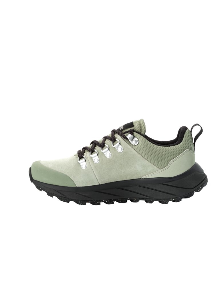The sustainable VIBRAM sole and EVA midsole ensure good grip and cushioning, whether you're navigating city streets or country paths. The main upper material is highly breathable and water-repellent suede leather, keeping your feet dry even in rainy weather or when walking through wet grass. The footwear is lined with ecological, recycled textile material.