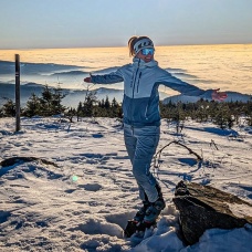 A hardshell jacket for women suitable for ski mountaineering, winter trekking and other sports activities.