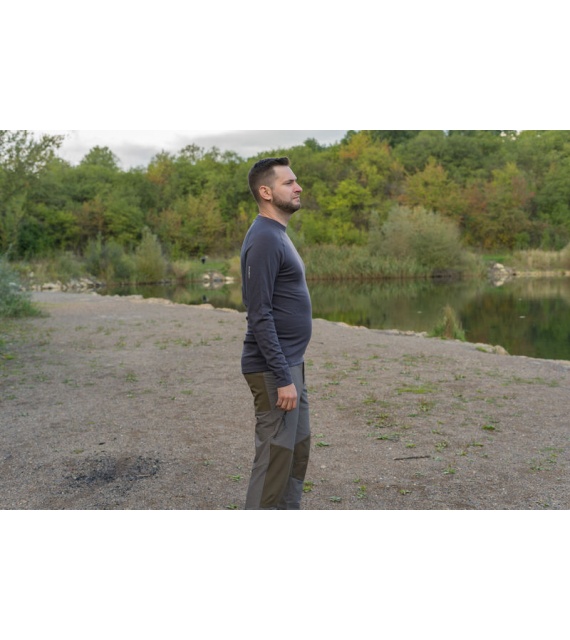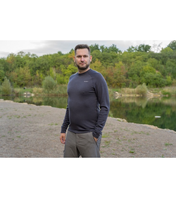 Férfi pulóver kellemes anyagból, merinó gyapjútartalommal, minden outdoor tevékenységhez õsz és tél között.