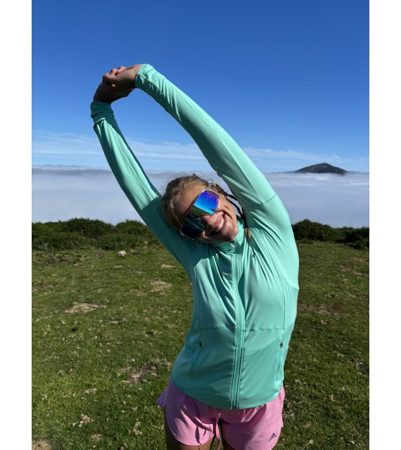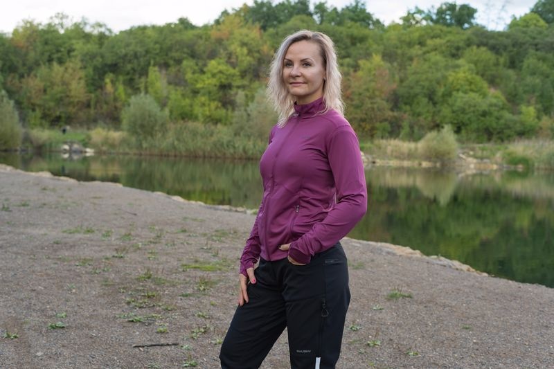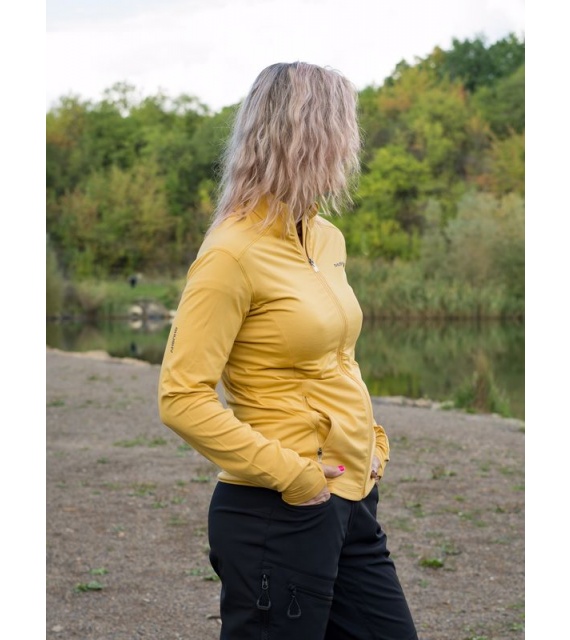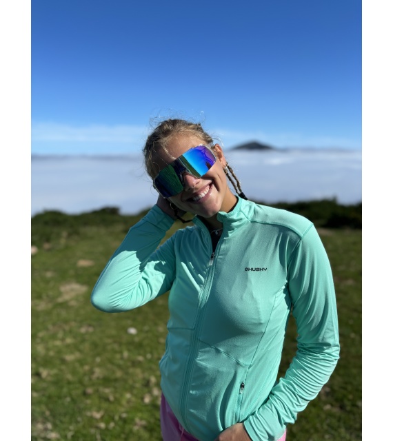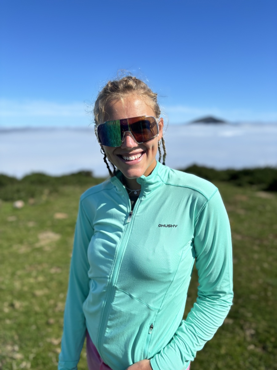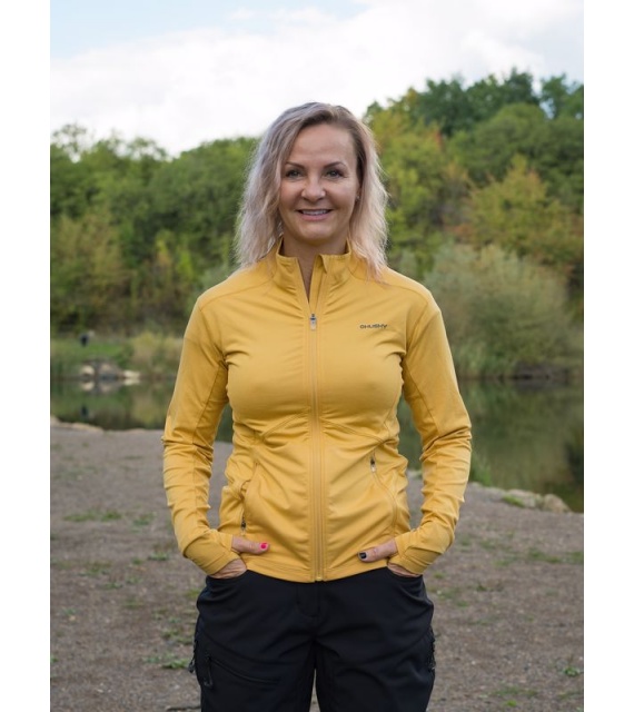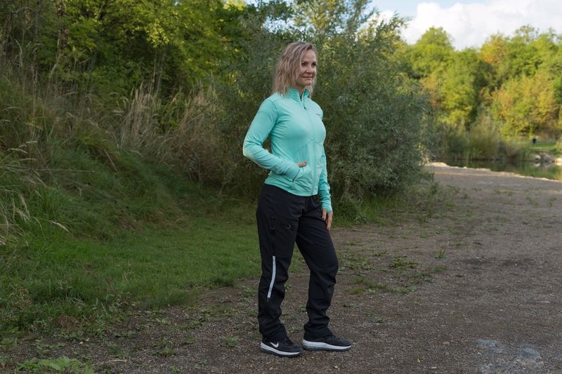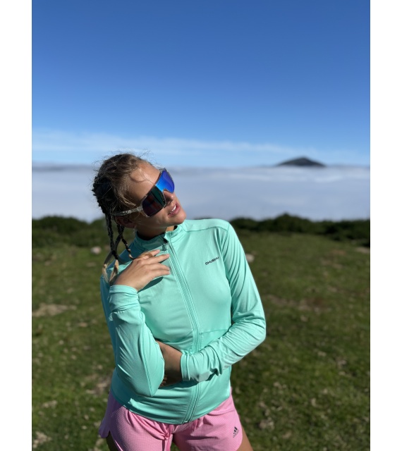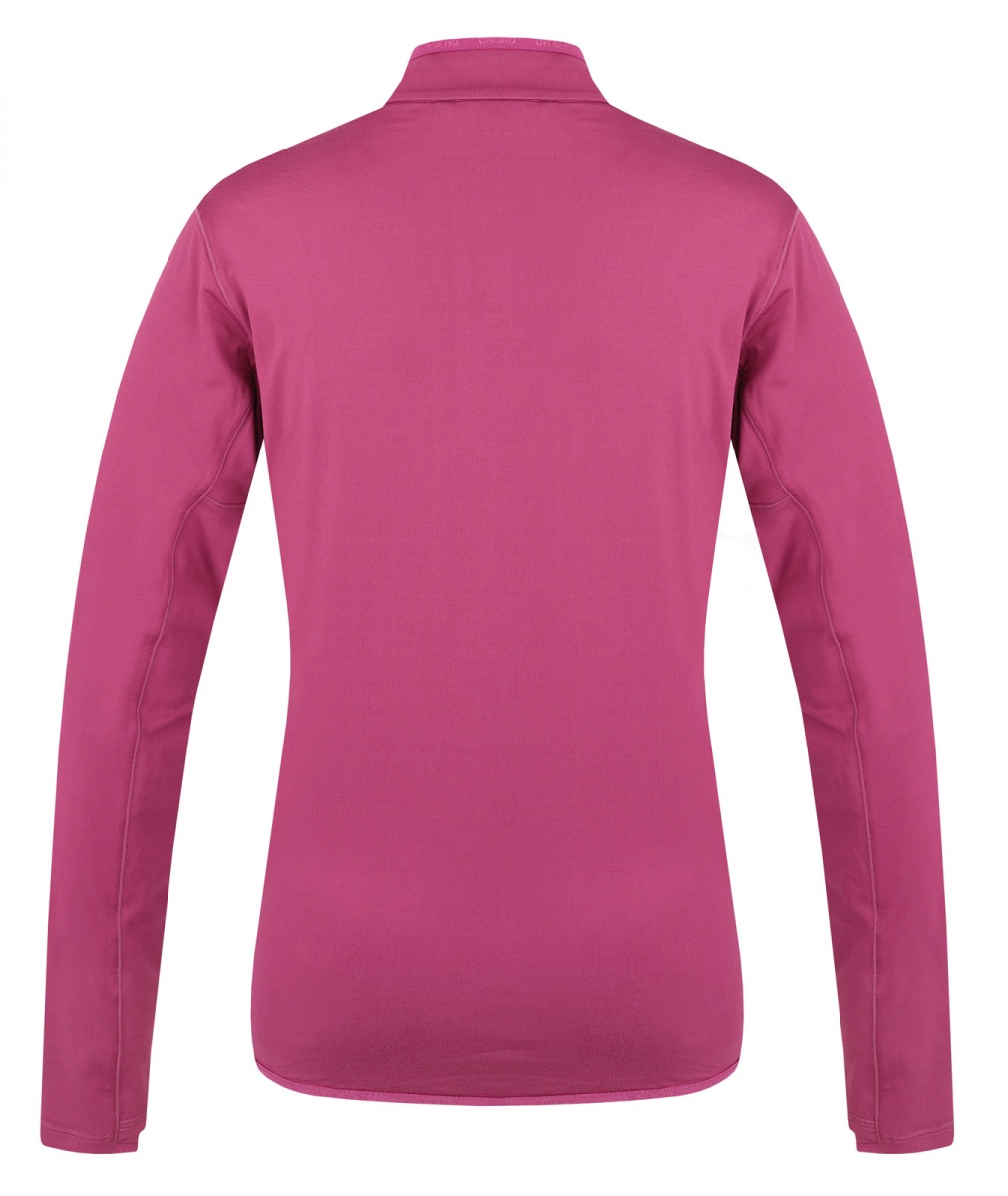 A női funkcionális cipzáras pulóver ideális sportoláshoz és aktív mozgáshoz a természetben.