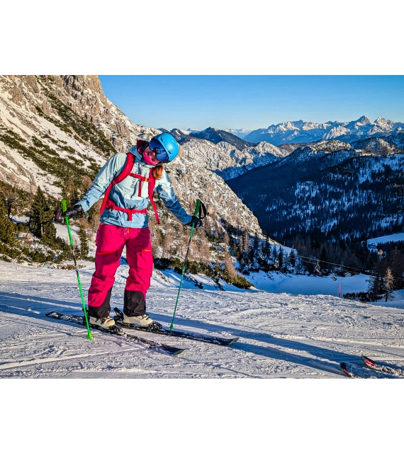 Női hardshell kabát, amely alkalmas síalpinizmusra, síelésre, téli túrázásra és egyéb sporttevékenységekre.