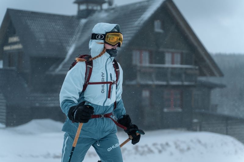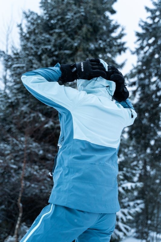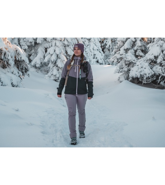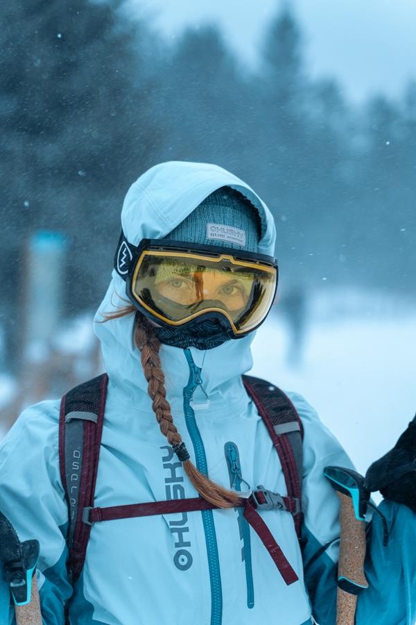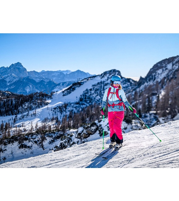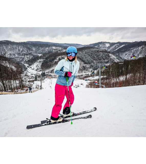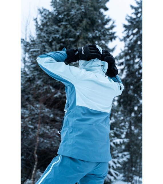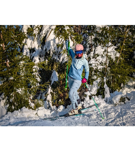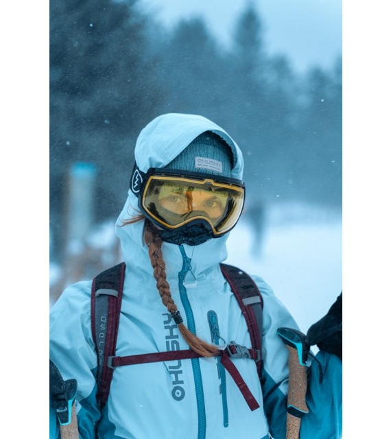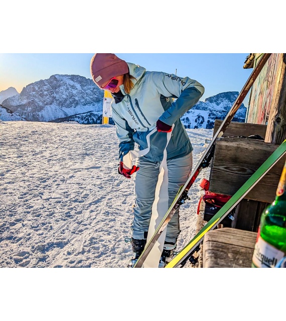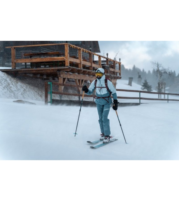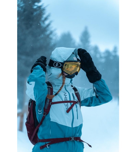 Női hardshell kabát, amely alkalmas síalpinizmusra, síelésre, téli túrázásra és egyéb sporttevékenységekre.