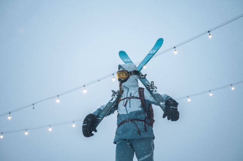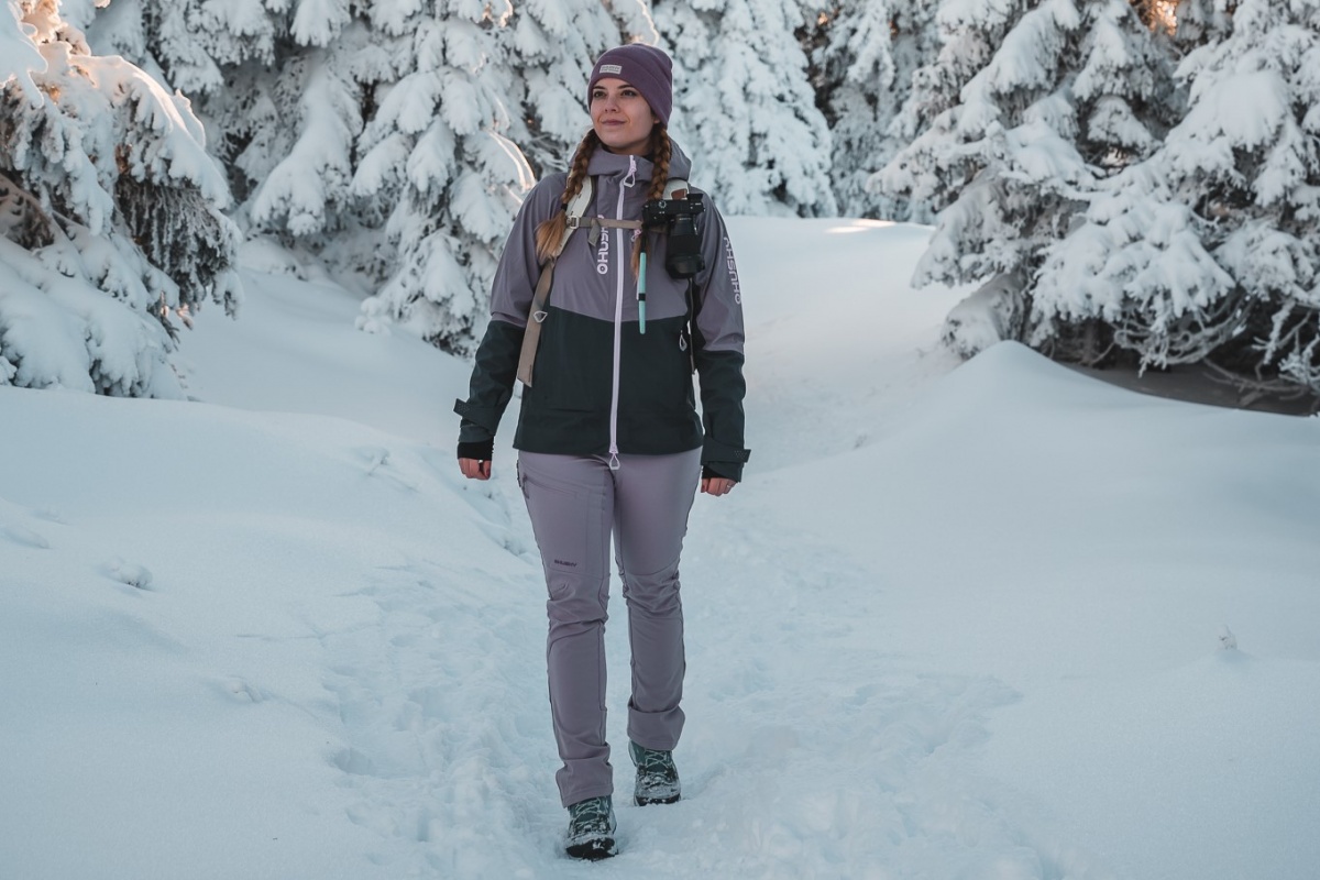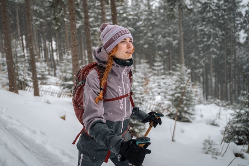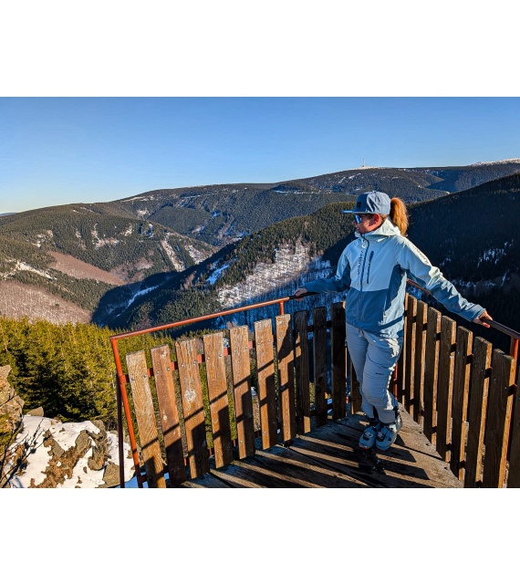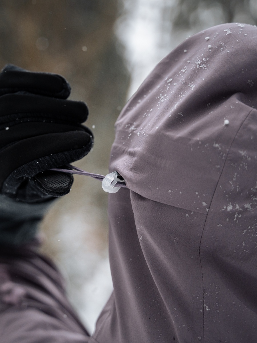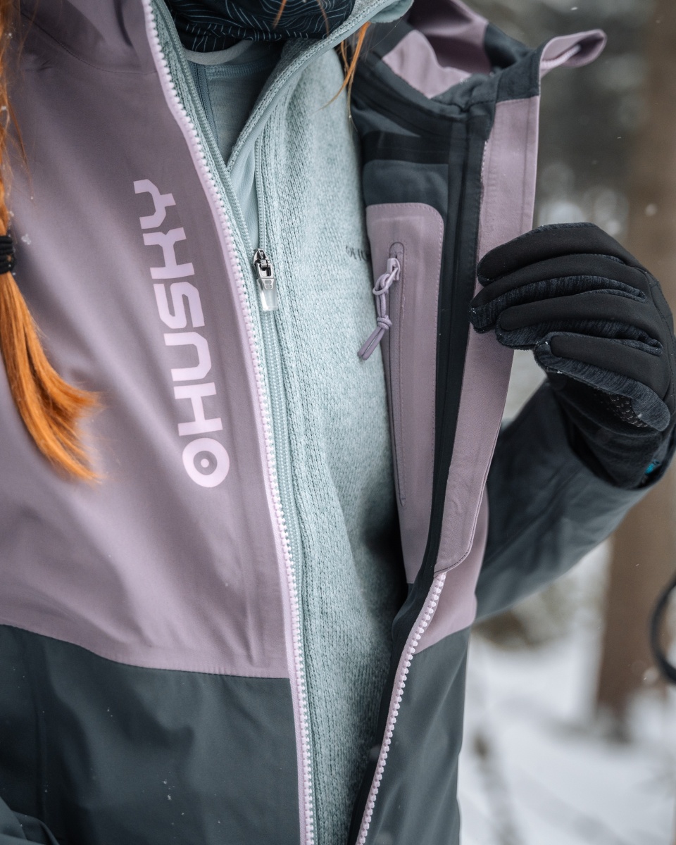 Női hardshell kabát, amely alkalmas síalpinizmusra, síelésre, téli túrázásra és egyéb sporttevékenységekre.