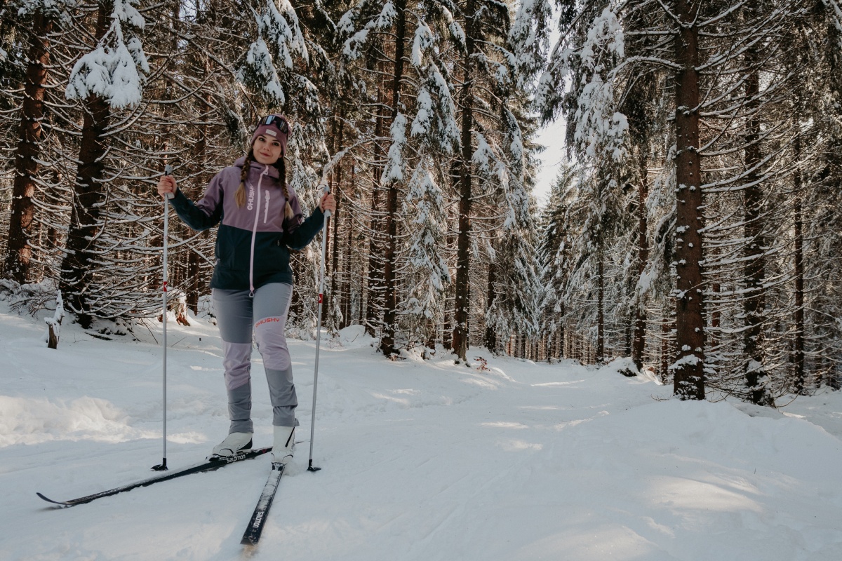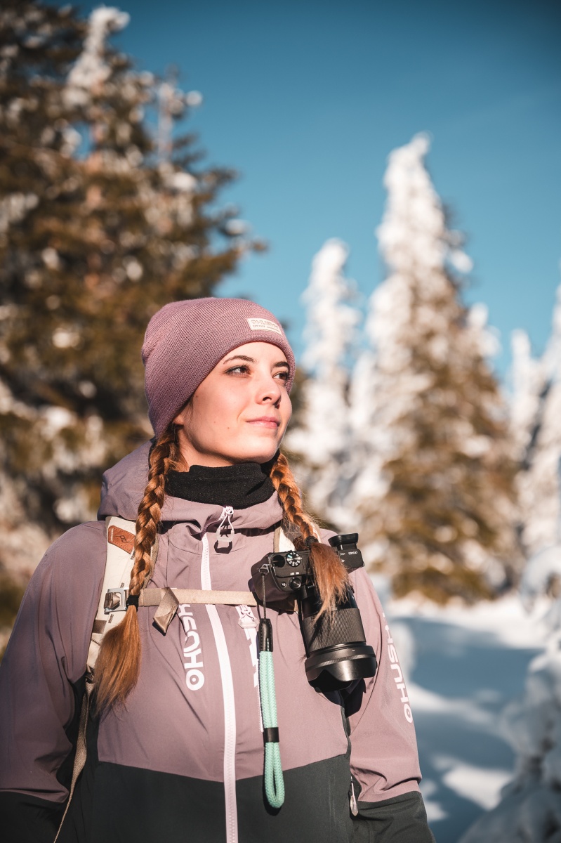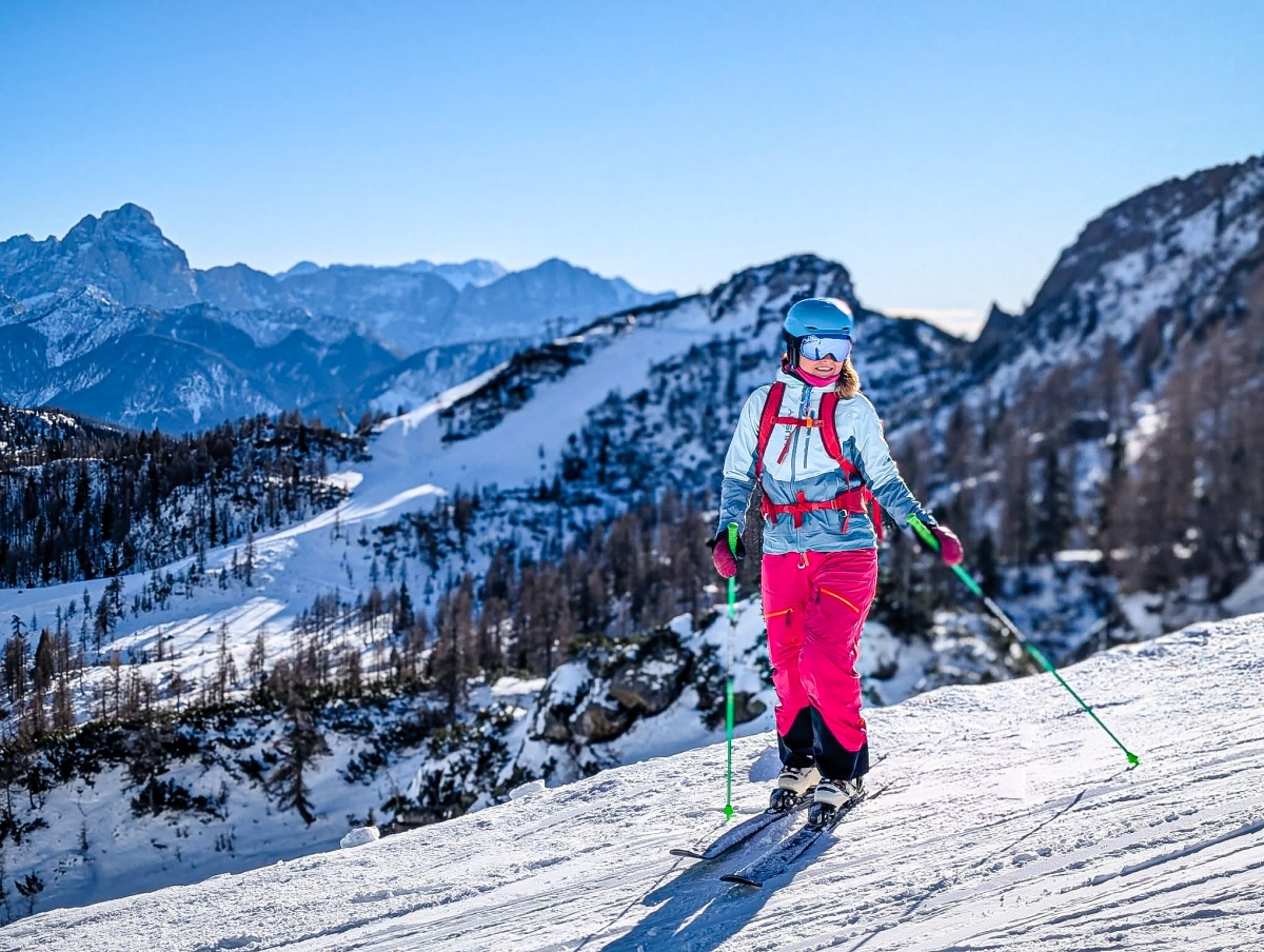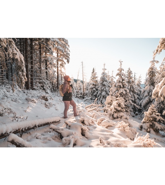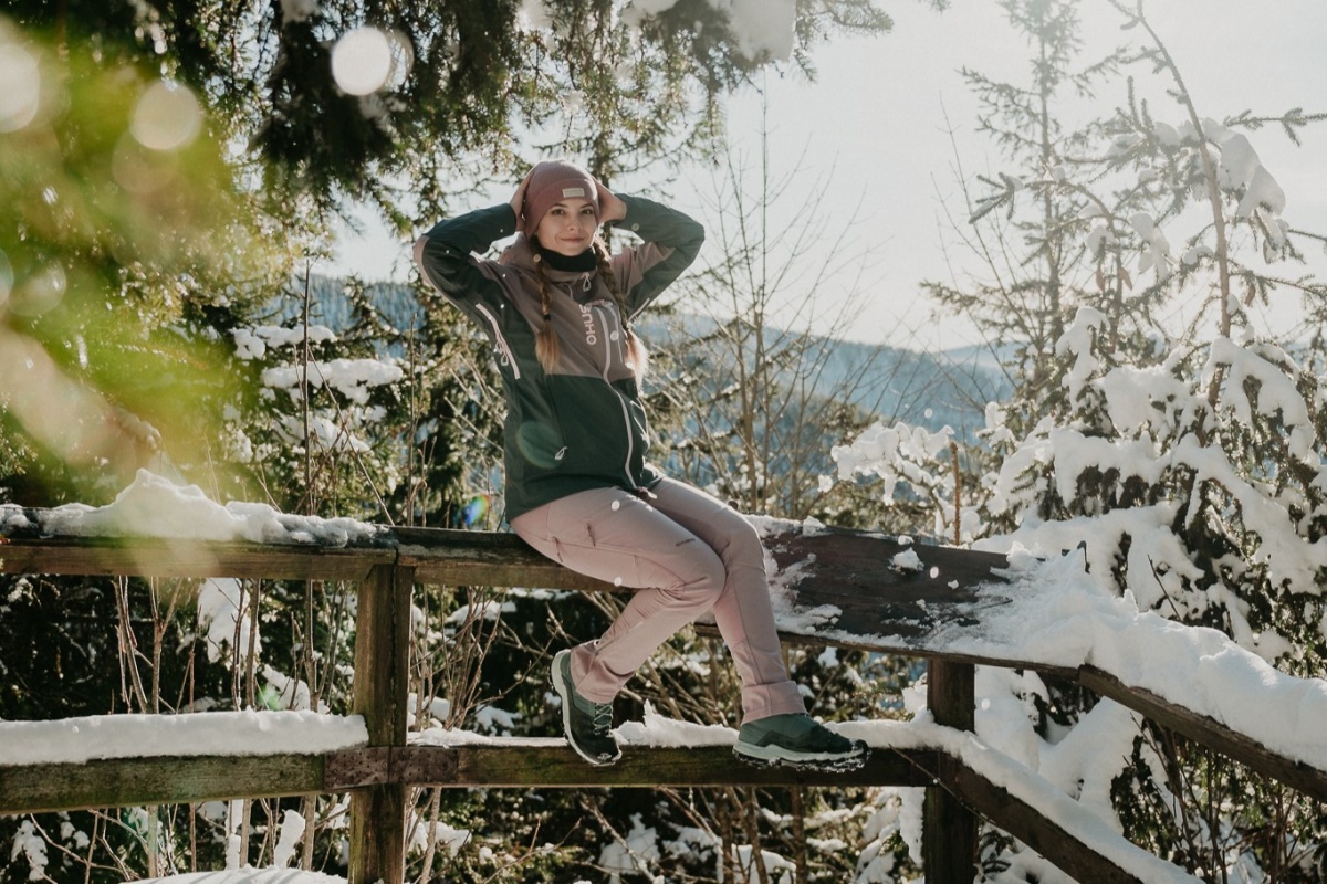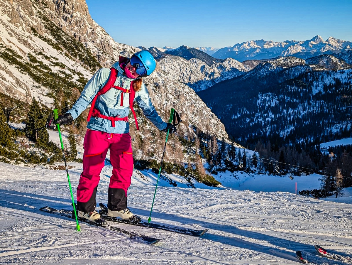 Női hardshell kabát, amely alkalmas síalpinizmusra, síelésre, téli túrázásra és egyéb sporttevékenységekre.