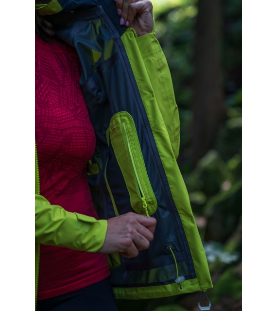 Sokoldalú és rendkívül funkcionális női, kapucnis dzseki igénybevételes körülmények közötti tevékenységekhez és egész éves használatra.