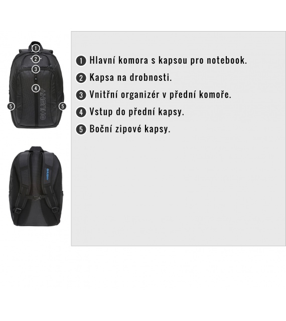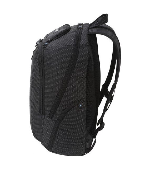 A Slander hátizsák felszereltsége: AMS hátizsákrendszer, légáteresztő párnázás az anatómiailag formázott vállpántokon, 2 fő rekesz, elülső zseb, zárható laptop zseb, oldalsó cipzáras zsebek, belső szervező.