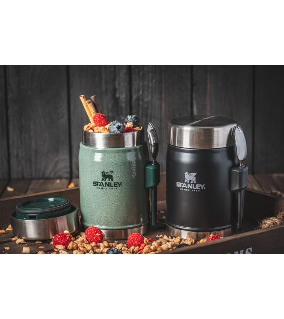 Vše, co potřebujete k dobrému jídlu, kdekoli na cestách, v kanceláři, výletě.... Jídelní termoska STANLEY Legendary Classic o objemu 400 ml se lžící/vidličkou v praktickém úchytu, který zabrání ztracení a je vždy po ruce.