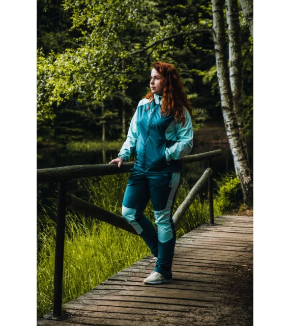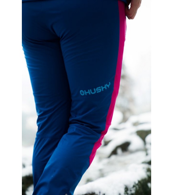 Prodyšné dámské kalhoty z odolného materiálu s elastickým pasem se stahováním na běžky, kolo nebo běhání.