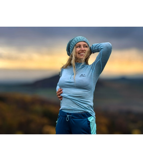Dámské triko s dlouhým rukávem a rolákem ze 100% merino vlny s antibakteriálními vlastnostmi pro různé outdoor aktivity po celý rok.