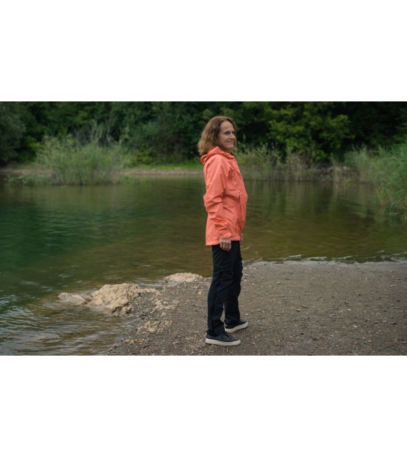 De waterdichte dames outdoorjas Lamy L hebben we gemaakt van 3-laags gelamineerd materiaal, dat je comfort biedt, zowel tijdens outdooractiviteiten in de natuur als tijdens het dragen in de stad. Dit model hebben we uitgerust met een aantrekkoord aan de binnenzoom en slimme ventilatie onder de oksels om de temperatuur te kunnen reguleren en het draagcomfort nog verder te verhogen.