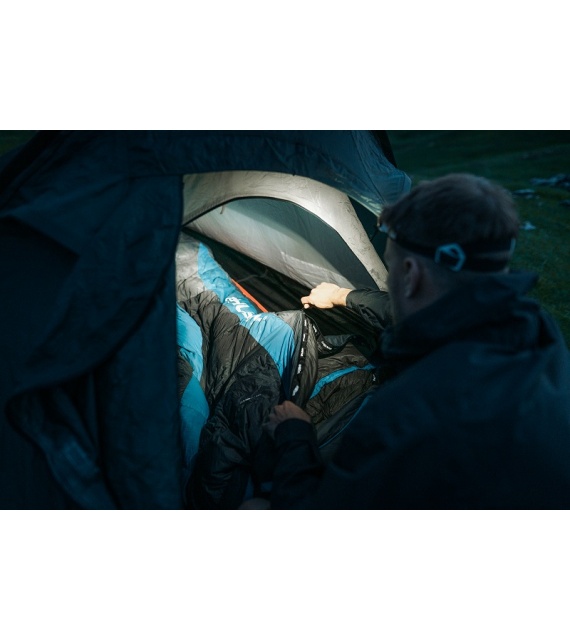 Een warme lichtgewicht slaapzak met eendendons vulling van hoge kwaliteit die extreme omstandigheden aankan.