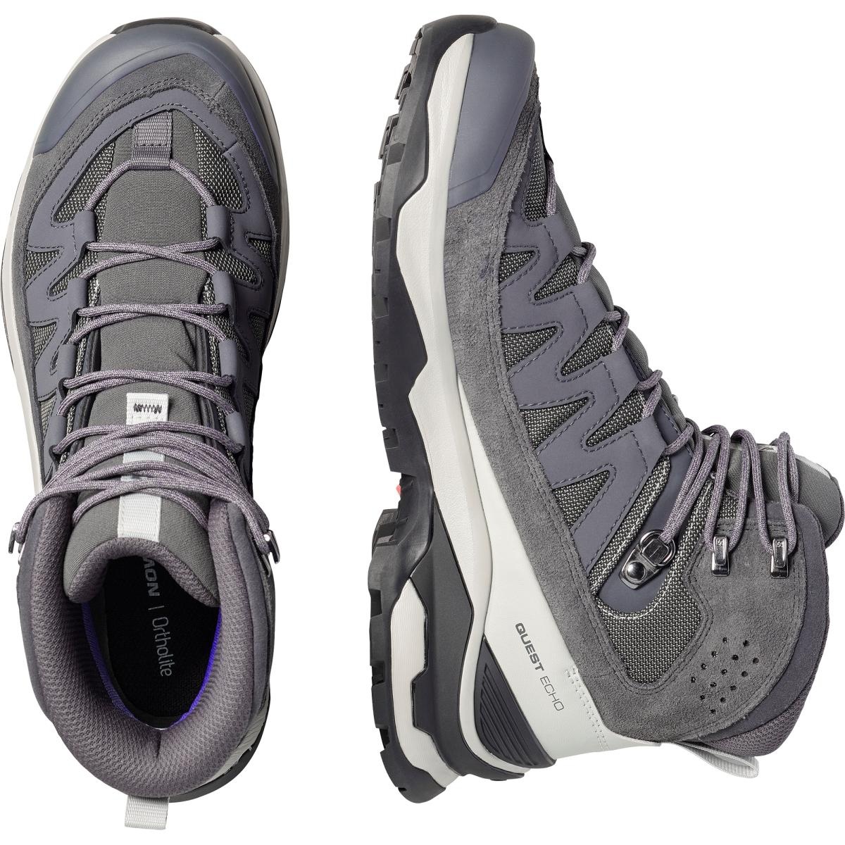 Ontsnap aan de drukte in de lichte, waterdichte Quest Echo GORE-TEX schoenen voor meerdaagse tochten, die veel aankunnen. Ze maken gebruik van de geavanceerde SalomonCHASSIS™ technologie voor maximale stabiliteit en wendbaarheid, zowel op als naast de paden. Deze schoenen zijn ontworpen om lang mee te gaan en zullen je vele jaren en kilometers van dienst zijn.