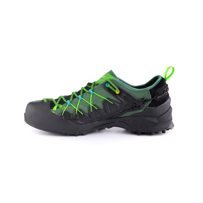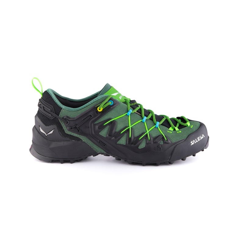 De Wildfire Edge GTX schoenen zijn gemaakt van waterdicht GORE-TEX® materiaal met Switchfit aanpassing, die de schoenen snel en eenvoudig van toer- naar klimmodus schakelt. Dankzij de vetersluiting tot aan de tenen kan de schoen nauwkeurig aan de voet worden aangepast. Door de stevige aantrekking van de veters via het tweede oogje wordt de voet naar voren verplaatst, net als bij klimschoenen, wat resulteert in een hoge gevoeligheid op kleine treden. Het bovenwerk van de schoen is gemaakt van robuust leer met een rasterconstructie, die zorgt voor torsiestabiliteit en het 3F systeem verbindt de wreef met de hiel voor een stevige fixatie. De Multi Fit Footbed Plus (MFF+) binnenzool biedt uitstekende demping en maakt gebruik van verwisselbare dubbellaagse inlegzolen voor een precieze aanpassing aan de voet. De buitenzool van de schoen is gemaakt van Pomoca Speed MTN materiaal van kleverig rubber voor extra grip op gladde en oneffen oppervlakken.