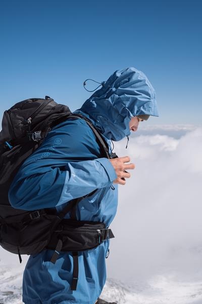 Functionele jas met membraan geschikt voor gebruik het hele jaar door voor allerlei outdoor activiteiten, ook bij extreem slecht weer.