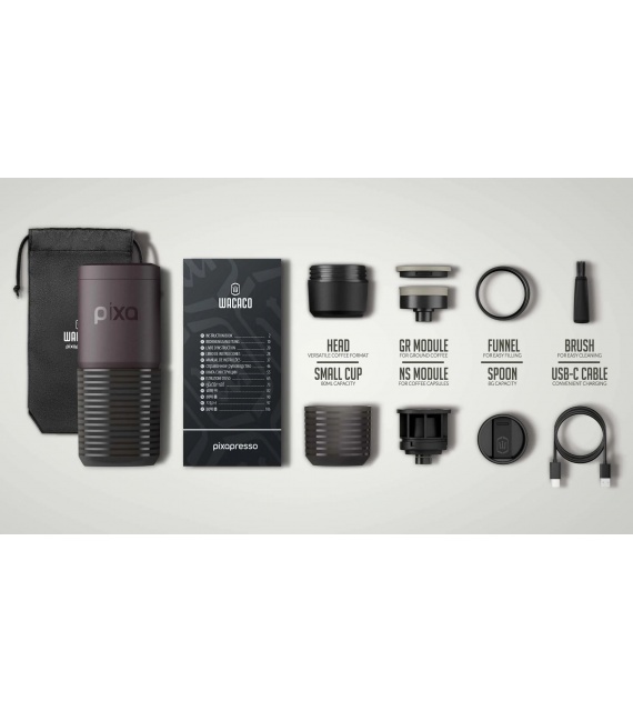 Pixapresso je první kompaktní elektrický espresso kávovar od společnosti Wacaco, určený pro nadšence do espressa, kteří odmítají dělat kompromisy v pohodlí, ať už jsou kdekoli. Díky elegantnímu a intuitivnímu displeji vám Pixapresso umožňuje bez námahy ovládat klíčová nastavení přípravy, jako je teplota horké vody a předlouhování, a dává vám tak možnost přizpůsobení na úrovni baristy přímo na dosah ruky. Ať už vaříte s čerstvě mletou kávou pomocí nastavitelného košíku, nebo si užíváte pohodlí kávových kapslí, Pixapresso přizpůsobí každý šálek vašim přesným preferencím. Je ideální pro domácí, kancelářské i venkovní dobrodružství a poskytuje výjimečný zážitek z espressa kdykoli a kdekoli - uspokojí jak běžné konzumenty, tak i náročné kávové znalce.