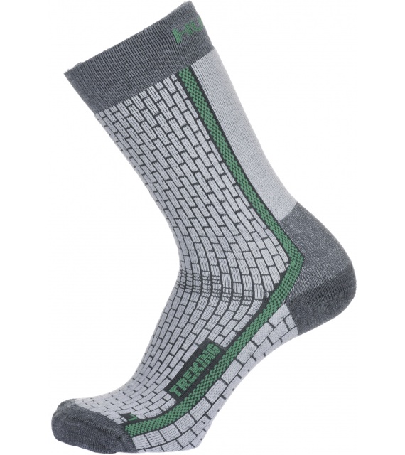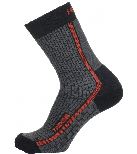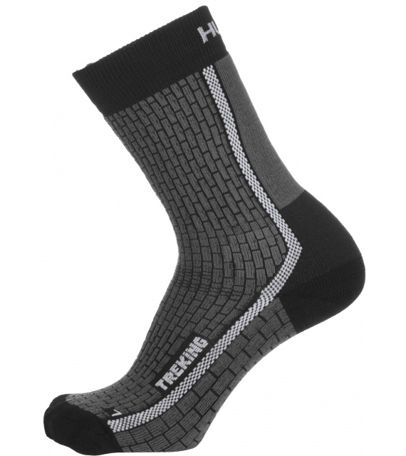 Trekking zijn warme sokken die tot boven de enkel reiken. Ze hebben een versterkt voetgedeelte voor een zachte landing en een verstevigd wreefgedeelte tegen afzakken. Ze zijn gemaakt van een mix van synthetische vezels, die uitblinkt in het vermogen om de temperatuur te reguleren afhankelijk van de intensiteit van de fysieke activiteit en zo maximaal comfort garandeert.