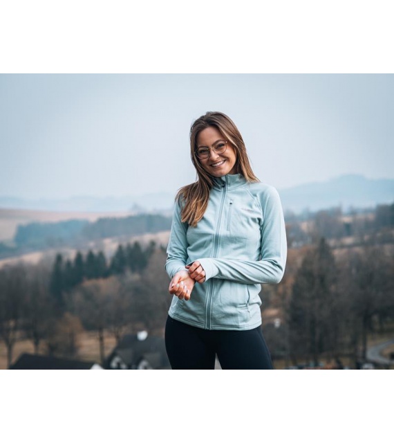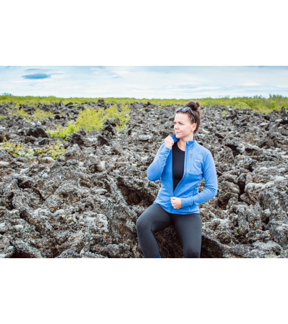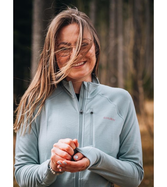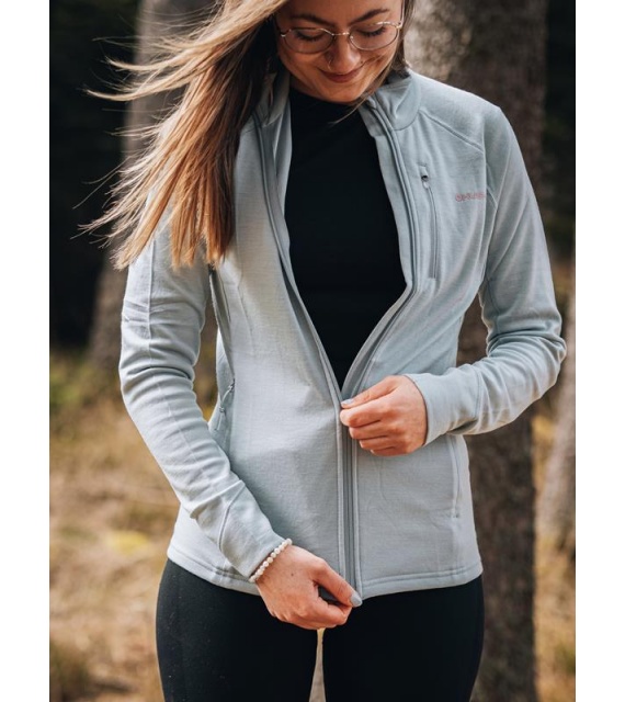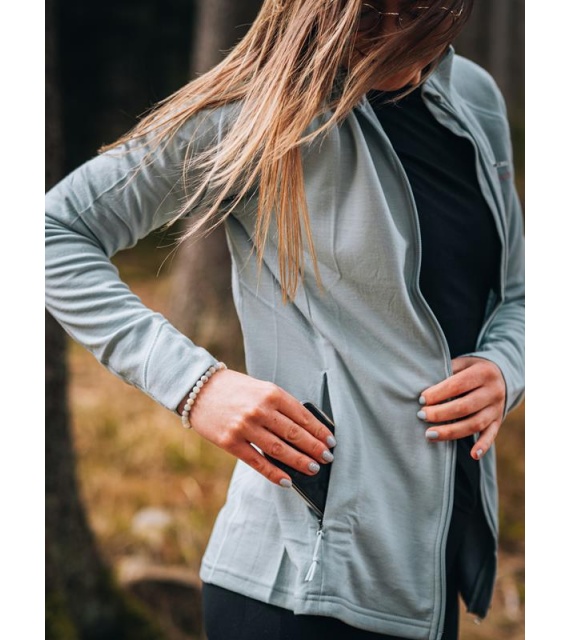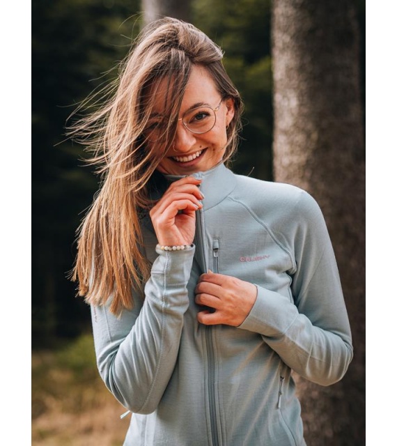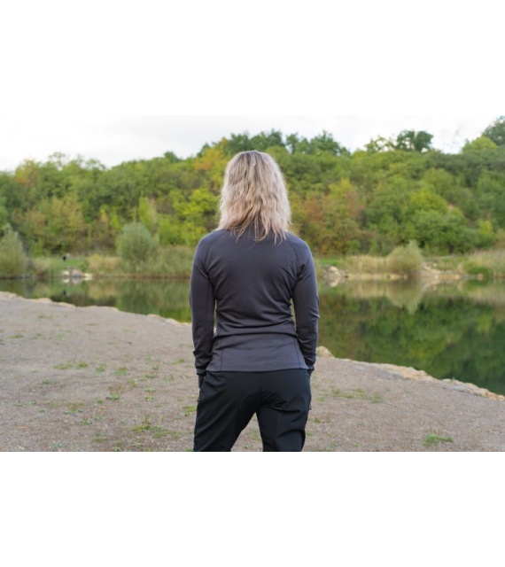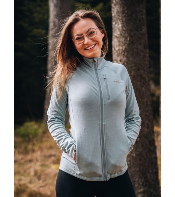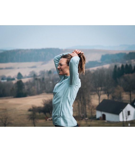 Functionele dames sweatshirt van merinowol met rits is geschikt voor alle outdooractiviteiten van de herfst tot de lente.