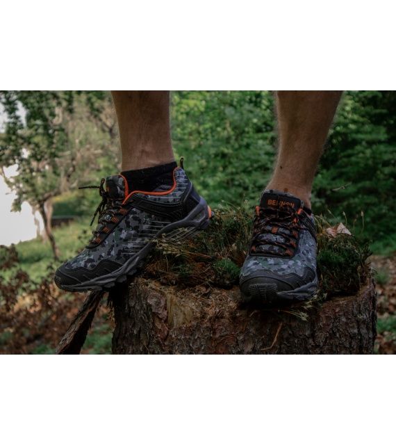 Camos van het merk BENNON is een lichte outdoorschoen met camouflagepatroon, niet alleen voor fans van de army-stijl. De versterkte hiel en de schokabsorberende binnenzool zorgen voor maximaal comfort tijdens het lopen, wat je voeten zeker zullen waarderen, vooral tijdens langere tochten of sportactiviteiten.