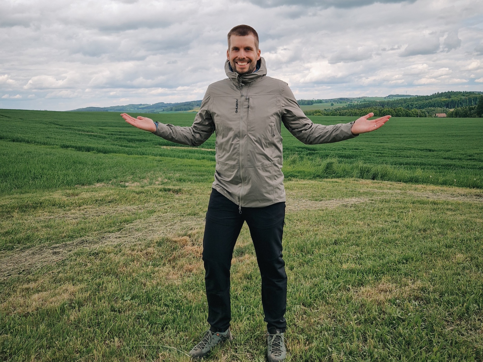 Pánský hardshellový kabát s membránou na běžné nošení ve městě i na turistiku v jarním a letním období.