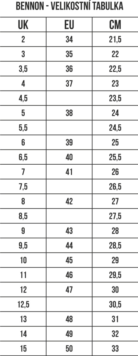 Velikosti bot jsou uvedené v EU
