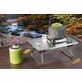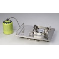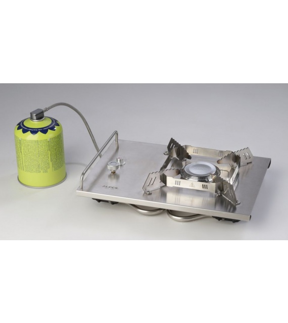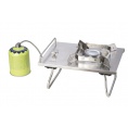 Přenosný kempingový vařič z nerezové oceli. Vysoký výkon hořáku 5 kW, piezo zapalování. Díky masivním nožičkám je vařič velmi stabilní. Ovládání a zapalování vařiče z vrchní části, umožňuje pohodlné použití do automobilů pro kufrové vestavby. Součástí vařiče je praktické textilní přepravní pouzdro.