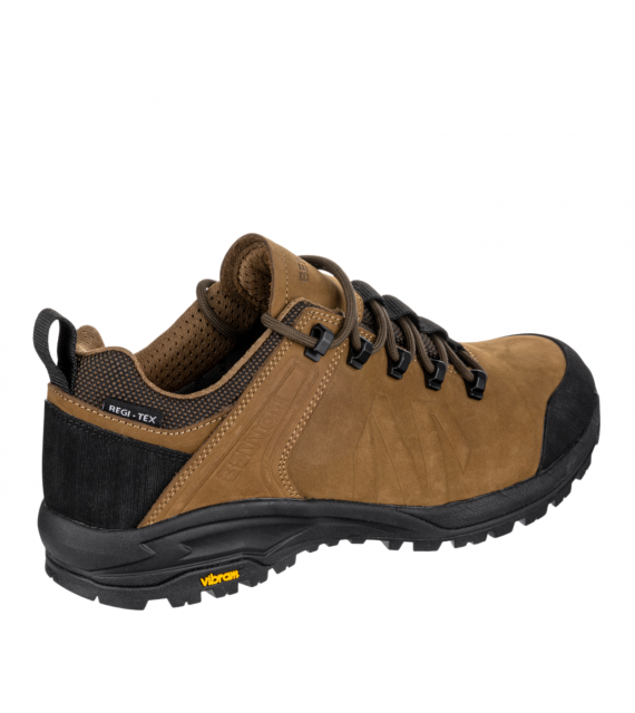 Celokožená trekingová obuv TERENNO 2.0 LOW je ideální volbou pro ty, kteří hledají lehkou, univerzální a přitom stabilní obuv na treky i volnočasové aktivity. Vrchní část z kvalitní hovězinové nubukové usně s pryžovými prvky zajišťuje vysokou odolnost a ochranu před vlivy počasí i mechanickým opotřebením. Díky voděodolné membráně REGI-TEX® zůstávají vaše nohy v suchu i při dešti nebo vlhkém terénu. Vnitřní síťovaná podšívka MESH podporuje prodyšnost, zatímco stélka ABSORBA XTR efektivně tlumí nárazy a přináší pohodlí i při celodenním nošení. Podešev Vibram® S3018 s kombinací EVA a pryže poskytuje spolehlivou trakci a stabilitu na členitém povrchu, takže zvládnete každý krok s jistotou. Nízké provedení obuvi nabízí větší volnost kotníku a ideální flexibilitu pro rychlejší pohyb nebo každodenní výlety.
