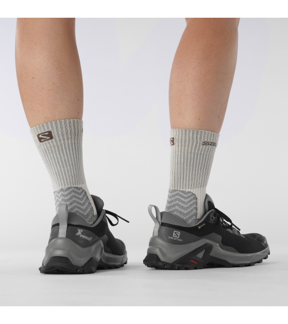 Dámské outdoorové boty Salomon X Reveal 2 GTX v moderním a sportovním vzhledu. Boty se zaměřují na pohodlí ve formě bohatě tvarovaného, pohodlného střihu, strategicky umístěného polstrování a měkké vložky Ortholite. Jejich lehká konstrukce se vyznačuje vlastnostmi, které jsou nepostradatelné pro outdoorové aktivity, včetně většího záběru díky optimalizované podrážce Contagrip, abyste mohli neustále pokračovat v cestě.